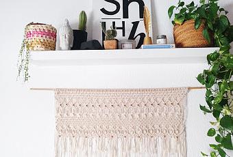 Probé a hacer éste sobre una base de un bastidor de madera en lugar de con el típico palo de madera recto y me gusta mucho el resultado.Simplemente utilicé el nudo cordón para hacer las diagonales y el resto con unos cuantos nudos planos. ¡Muy sencillo!