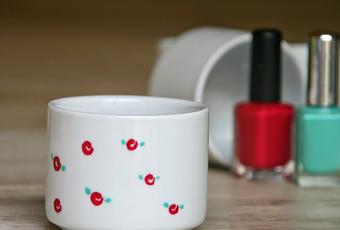 Vamos a convertir una taza relativamente sosa en una mucho más dulce con esmalte de uñas.