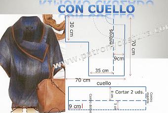 Al centro delante le agregamos al patrón 9 cm a todo lo largo.El cuello: hacemos un rectángulo de unos 13 cm aproximadamente de ancho por el largo desde el centro espalda hasta el cruce delante; lo cortamos en recto y al doblar los 8 cm da ese efecto con el pico delante más pronunciado.