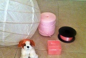 - Lámpara de papel (la mía es del ikea la podéis encontrar aquí es la que tenia puesta en la habitación desde hace mucho)- Trapillo ( soy aficionada a las cestas...)- Cinta para forrar la cajita - Osito de peluche - Aguja e hilo- Pistola de silicona