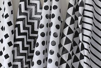 Navegando por el ciberespacio nos encontramos con esta idea que nos encantó por su su sencillez y sobre todo por el resultado tan vistoso y original: unos trapos blancos de algodón convertidos en PAÑOS BLACK & WHITE de estampado y estilo nórdico ¿No os parece una idea buenísima? Además la podemos aplicar a manteles, servilletas, etc...