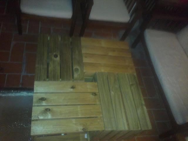 vi una foto por internet de una mesa hecha con cajas de fruta de madera. Como no las encontré por ningún lugar, compré las maderas para hacerlas yo misma y el resultado fue una genial mesa para mi terraza!!!!