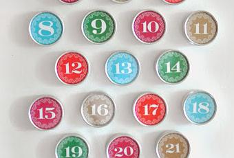 1. Comienza por descargar e imprimir el calendario de adviento PDF . Con un cuchillo de X-Acto, corta a lo largo de líneas negras. Una vez que los círculos se cortan, corte hacia adentro haciendo pequeños cortes a lo largo del borde exterior. Asegúrate de cortar sólo hasta el borde del color. Esto ayudará en la adaptación de las rondas en el interior de los párpados.
