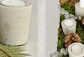 Para realizar el portavelas de cemento, bastara con preparar la mezcla e introducirla en el vaso de plástico, con el cemento aún fresco colocas la vela (de diferentes tamaños si lo prefieres) en el centro y esperas a que este totalmente seco. A continuación rompes el vaso con cuidado y ya tienes el portavelas. Para concluir distribuyes en la bandeja las velas piñas y musgo....ya está.