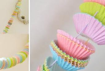 El título ya lo dice todo, hoy os enseño maneras de hacer unas preciosas y coloridas guirnaldas simplemente usando esos papelitos o blondas para las magdalenas y cupcakes. Simplemente uniendo a través de una cuerda esos papelitos. Y para que veáis lo fácil que es y lo bonito que queda os he puesto 3 ejemplos con resultados distintos. Uno uniendo papelitos en el mismo sentido, el segundo cambiando la dirección de los papelitos, unos hacia un lado, los otros hacia el otro. Y la tercera manera, también tiene papelitos cambiados en todas las direcciones pero además unos los tiene más abiertos y los otros más cerrados. ¡A ver cuál os gusta más!