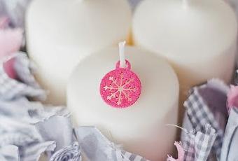 - Como toque extra decorativo he colocado un detalle de fieltro en la mecha de la vela. Pero, ¡cuidado! ¡no hagáis esto si pensáis encender las velas!