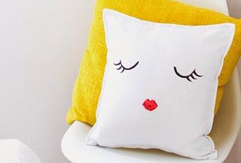 Primeramente dibujamos con el lapicero la forma de las pestañas, ponemos un papel en el interior del cojín y con el pincel (con mucha cuidado y pulso firme) lo pintamos con la pintura negra. Cuando este seco pasamos suavemente a plancha por el revés.