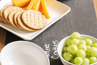 Ya está, ahora ya tienes una fantástica bandeja de pizarra, escribe unas palabras y el nombre de los aperitivos que sirvas y sorprende a tus invitados.