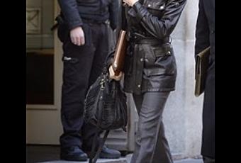 Sin embargo, Dña. Letizia quiso darle un toque más deportivo y en lugar de llevar un abrigo recto, de líneas simples, de acuerdo con su chaqueta y pantalón, eligió una parka de cuero negro con los hombros acolchados, de la firma Belstaff, muy casual y un bolso también de estilo "sport" de Boss Orange, que tiene en dos colores, negro y tabaco.