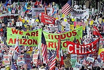Este día en Los Ángeles, California, la tercer ciudad con más mexicanos en el mundo, solo detrás de la Cd. de México y Guadalajara, ha sido testigo del músculo de los latinos, bajo unas camisetas con la pregunta ‘Do I look illegal’ se han congregado en el centro de la ciudad y desde allí se dejarán escuchar en todo el mundo.