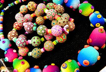 Más arcilla polimérica en este collar que adornaba la feria DIY.