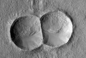 El 10 de enero pasado la cámara descubrió un notable doble cráter en la región Fossae Icaria. Como señala Alfred McEwen, investigador principal de HiRISE (Universidad de Arizona), sea lo que sea lo que excavó estas cavidades, de 1 milla de ancho (1600 metros), "debe haberse dividido en dos antes del impacto para que estos cráteres sean reconocibles." No hay manera de saber si los proyectiles eran procedían de un asteroide o un cometa, pero las dos piezas deben haber tenido la misma masa para producir cráteres de igual tamaño.
