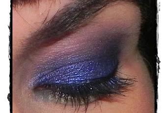 Así que en primer lugar apliqué el jumbo azul eléctrico en el párpado superior, y lo fijé un pigmento azul muy vivo con acabado metálico. Como solo apliqué el jumbo hasta el pliegue, el resto del párpado superior (del pliegue hacia adonde termina el color), lo vamos a trabajar con el mismo pincel de difuminar para darle un aire más ahumado. También marcamos levemente la "uve" (extremo externo del ojo) con una sombra mate, en este caso la berenjena de Martora, para "encerrar" el brillo, asegurar el pigmento y dar profundidad al acabado de la sombra. Terminamos el párpado superior con una sombra piel que nos ayude a degradar el corte y de un aire más profesional al resto del look, más unificado. Yo además, perfilé de negro para resaltar la línea de las pestañas. En las fotos que ven abajo se aprecia mejor la diferencia entre jumbo+sombra en párpado móvil y solo pigmento en la parte del pliegue...