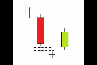- Se produce una gran candela roja la cual es seguida por un Doji cuya apertura y cierre se produce por debajo del mínimo o cierre del cuerpo de la candela roja. Durante el siguiente periodo se forma una candela verde que abre por encima tanto de la apertura como del cierre del Doji y penetra profundamente dentro de la gran candela roja cerrando dentro de la misma.