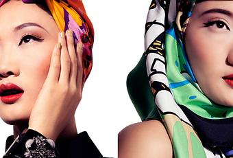 Love this editorial, not just because it's a fantastic guide of wearing a scarf in style, but because of the amazing model Fang Jun Zi Xu and her pure porcelain beauty. She definitely looks like a doll.