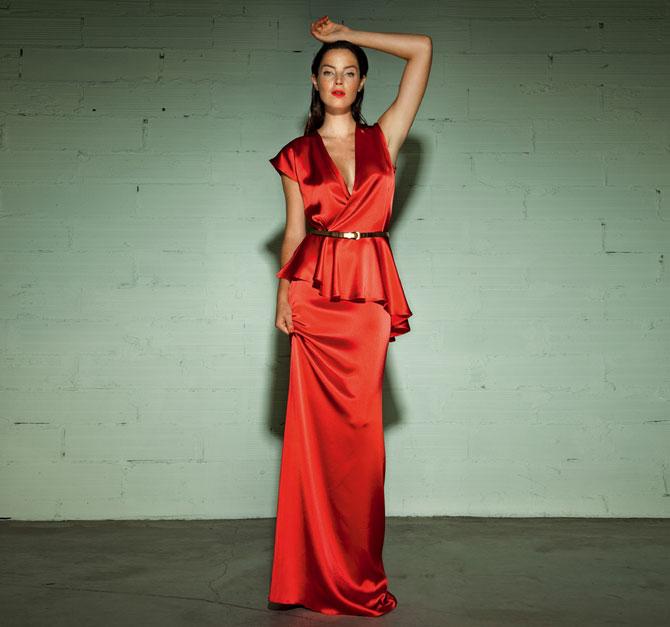 El verde, el rojo y el azul klein son los otros colores predominantes. Y los vemos en vestidos de cócktail o largos de fiesta. El rojo es uno de mis peferidos, ya que resulta muy favorecedor. destaca en este tono este vestido largo de fiesta con top peplum y cinturón estrecho dorado.