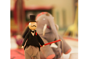 Este pequeño domador, en cambio, no puede engañar a nadie, sólo se enfrentará a animales hechos de trapo y madera como él.