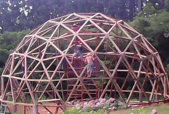 La ventaja de un curso de domo geodesico en el local de un anfitrión es que en tiempo récord se monta una estructura de domo geodesico y además con el aporte de los participantes se fianancia una parte importante del costo de la obra.