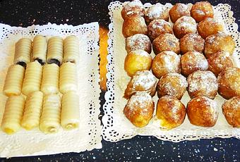 Sí, son huesos de santo y buñuelos rellenos de crema, nata, chocolate, trufa, y esos de cabello de ángel y batata que nadie quiere nunca pero que hay que poner, porque así lo manda la tradición. Ja. Caramelitos. Venga ya.