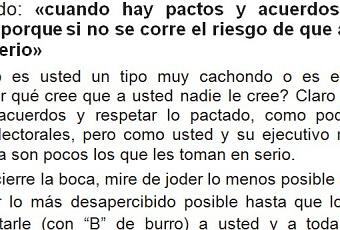 Es curioso, por no decir ridículo, que quien poco ha respetado su palabra, acuerdos y programas electorales haga esta reflexión.