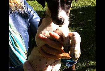 Dona, a pesar de ser un pizquito de perrita, ya sabe lo que es pasar frio, hambre y abandono. Estaba en un poligono industrial junto a su hermano, mendigando cariño y comida. Una mañana apareció sola, llorando y buscando a su hermano. Una compañera al verla sola, y pensar que su hermano ya habria perdido la vida y que ella pronto correría la misma suerte, la recogió.Llegó muy asustadita y bastante tranquila durmiendo largos ratos en su camita. Pasados unos dias ya es una cachorrita mas sociable y confiada. Solo tiene dos meses y medio, y necesita urgentemente un hogar definitivo.