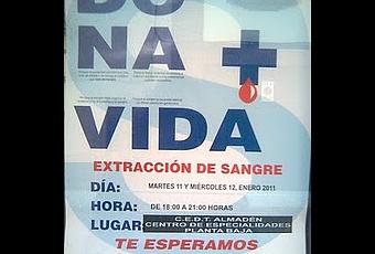 Los días 11 y 12 de enero de 2011 se llevará a cabo en la planta baja del Centro de Especialidades de Diagnóstico y Tratamiento de Almadén, de 18:00-21:00 horas, una nueva campaña de donación de sangre.
