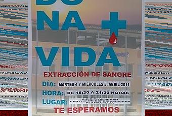 Los días 4 y 5 de abril de 2011 se llevará a cabo en la planta baja del Centro de Especialidades de Diagnóstico y Tratamiento de Almadén, de 18:30-21:30 horas, una nueva campaña de donación de sangre. Os animamos a que participeis en esta campaña donando sangre, en beneficio de todas las personas que así lo necesiten. Fuente: comunicación personal
