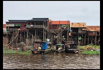Hoy Siang nos ha dicho que "el programa" nos lleva a ver una ciudad flotante y las casas "surpilotées" a 8 metros del suelo. Tenemos por delante una hora de carretera y al poco rato nos damos cuenta que estamos entrando en la Camboya real, muy alejada del bullicio de los turistas de Siam Reap. Ya hace tiempo que comprobé que donde hay ricos hay pobres, así por las calles con luces de neón a go go hay gente que pide limosna.
