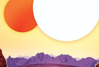 Considera, pues, la posibilidad de visitar Kepler-16b, un mundo que hay en un sistema binario de estrellas. Kepler-16b es el primer planeta descubierto que orbita dos estrellas. Se detectó en una amplia órbita de 229 días alrededor de una pareja de estrellas frías y de baja masa que hay a unos 200 años luz de distancia. Las estrellas se eclipsan mutuamente en sus órbitas, lo que se observa como una atenuación de la luz estelar. Kepler-16b fue descubierto siguiendo la atenuación adicional muy ligera producida durante los tránsitos. Como en el planeta de ciencia-ficción Tatooine de Star Wars, los dos soles se ponen sobre el horizonte. De todas formas, seguramente Kepler 16b no es un mundo terrestre y desértico como Tatooine. Al contrario, se cree que Kepler 16b es un planeta frío y desolado con una masa como la de Saturno y una superficie gaseosa. Por lo tanto, rellena la maleta con la ropa adecuada, o bien elige otro destino de vacaciones del catálogo Visions of the Future.
