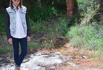 Monday already!! After this short vacation I'm coming with a lot of strengt. Strength that I'll be needing during the following weeks as I have many projects. Even though I haven't left the blog aside these days, I did want to bring you one of those entries you like so much. I would like to introduce you to another tiny place in the sierra where, as you already know, go every time I have the chance. This time I chose a really normal and comfortable look, mixing a classic shirt with jeans jacket and leather sleeves. Sneakers for my feet.Hope you like the photos and thank you for your comments.Have a nice week.