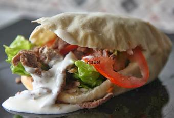 Hecho con filetes de carne y cortado muy finito, lo hice en el horno de la cocina y quedó espectacular. La carne se cocina en su propio jugo y queda jugoso. Así como lo cocinan en los negocios de Döner Kebab.