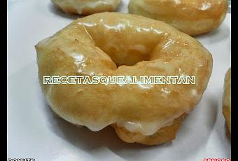 Ponemos una sartén al fuego con abundante aceite de girasol, añadimos el trocito de masa en el aceite para ver cuando tiene la temperatura adecuada, ya que debe estar bien caliente. Antes de añadir los donuts, bajamos un poco el fuego y freímos a fuego bajo, damos la vuelta con un tenedor y cuando estén fritos por el otro lado, los ponemos a enfriar encima de una rejilla. Colocamos en papel absorbente y glaseamos por encima. Para añadir la glasa, los donuts deben estar un poco calientes. Salud.