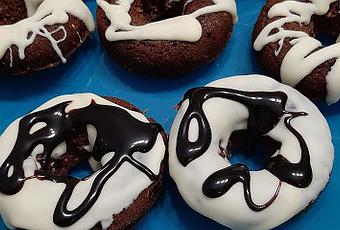 Para el baño derretir 100 gr de chocolate blanco con una cucharadita de aceite de coco y bañar o adornar los donuts....También se puede fundir un poco de chocolate negro y adornar por encima.