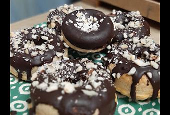 Rellenar con esta masa los moldes para donuts y hornear durante 7-12 minutos a 180ºC (yo he necesitado 15 minutos en mi horno) o hasta que empiecen a dorarse.
