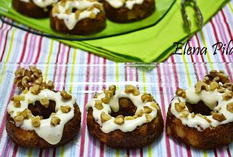 - Bañamos los donuts en el frosting y espolvoreamos unas nueces picadas.