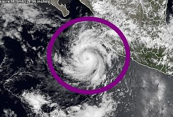El sistema se ubica a 335 km al Sur - Sudoeste de Cabo Corrientes, Jalisco(México) y a 630 km al Sur - Sudeste del sur de Baja California Sur, posee vientos máximos de 150 km/h con rachas superiores de 185 km/h, tiene un movimiento hacia el Oeste - Noroeste a 20 km/h y su presión central es de 981 hPa.