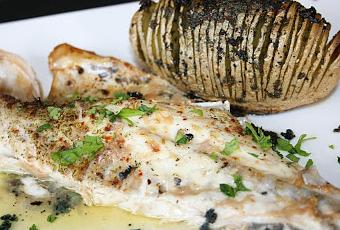Una dorada 3 dientes de ajo 50 ml vino blanco perejil sal variedad de pimientas aceite de oliva