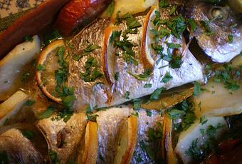 a estoy de vuelta después de unos cuantos días sin publicar. Hemos estado de reformas en casa y está última semana tocaba pintar, colocar todo en su sitio y la limpieza general, realmente agotador con jornadas maratonianas de quehaceres domésticos en los que el final parecía no llegar nunca. El cocinar, era ya, un añadido a tanto trabajo y realmente no se nos apetecía para nada volcarnos en platos elaborados. Así que hoy, con todo acabado y en su sitio, nos vamos a dar un homenaje con esta receta de pescado al horno, que aunque no es nada elaborada y prácticamente se cocina sola, sí que vamos a disfrutarla con total tranquilidad. Poco a poco me iré poniendo al día con todas vuestras recetas publicadas en estos días.Cocinar el pescado al horno, como en este caso, unas doradas, es una de las técnicas más saludables para la elaboración de este alimento. Además de no aportar excesiva grasa, con el cocinado al horno conseguimos mantener el sabor y las propiedades del producto. Esta receta es un clásico de que estoy convencido, muchos de vosotros elaboráis con asiduidad. También forma parte del recetario familiar desde hace muchos años, al menos los que llevo casado que ya son un puñao, así que había que hacerle un hueco en este blog. Tan rica y resultona llega a ser esta receta, que en más de una comida festiva o de celebración, se ha dejado caer por la mesa como plato principal y el éxito siempre la ha acompañado.