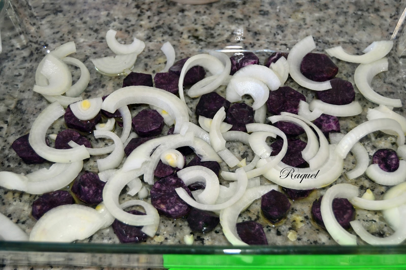 Precalentamos el horno a 180 grados arriba y abajo.Patatas Vitelotte o patatas violeta