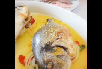 Elaboración para la Dorada al horno con una cama de papas, pimientos y cebolla (2 personas):