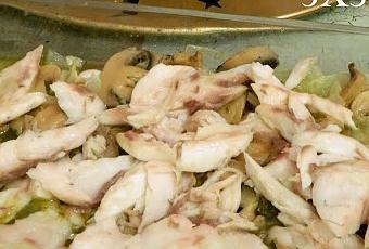 Incorporamos la dorada, le ponemos el zumo del limón exprimido y sal. Tapamos
