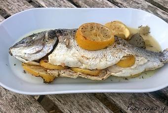 Metemos las doradas en el horno, a los 20minutoslas sacamos y echamos el vino blanco(50 mililitros por dorada). Horneamos 5 minutosmás, comprobando que está hecha antes de apagar el horno.