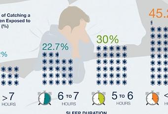 Luego, les administraron por vía nasal el virus del resfriado común para ver si se resfriaban o no y poder observar la reacción fisiológica de defensa mediante el análisis químico de los mocos que les recogían a diario de la nariz. Las personas que la semana anterior habían dormido menos de 6 horas por noche eran 4,2 veces más vulnerables que los otros al virus y los que habían dormido menos de cuatro horas tenían 4,5 veces más probabilidades de coger un resfriado.