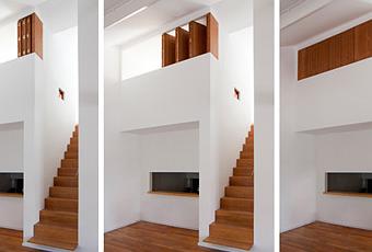 Un espacio en una entreplanta se ha transformado en un dormitorio en el que la ventana es el nexo de unión con la planta inferior.