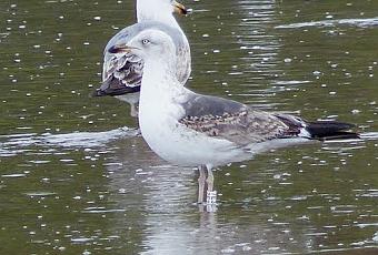 Un buen número de gaviotas sombrías no retorna a sus áreas de cría hasta que no son adultas. En ambos casos se trata de ejemplares de 2º verano, o tercer año calendario. Pero como se puede comprobar su estado de muda es muy diferente, ya que en un caso las coberteras están casi mudadas por completo y en el otro no.