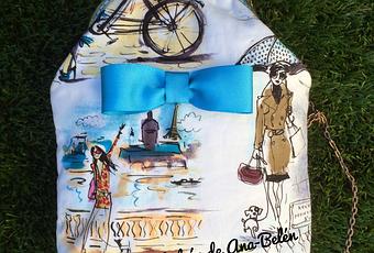 Con aires parisinos y estilo vintage. Si agrandáis la foto, podéis observar un charm de la torre Eiffel colgado del lazo que decora el bolso y que a mí me gusta mucho.