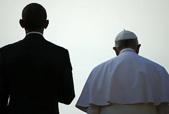 Cada uno predica el evangelio a su manera. No se precisa creencia en divinidad alguna para divulgarlo. Se puede incluso prescindir de símbolos que lo hagan más entendible o de personas que piensen como tú y contribuyan a la labor misionera. En su etimología, evangelizar es difundir la buena nueva. En estos tiempos de zozobra y de fricciones lo que faltan son buenas nuevas que contar. No son propiedad de las religiones, de las muchas que llenan los mapas, las noticias buenas, las que hacen que el espíritu respire y se sientan feliz en convivencia con los demás y consigo mismo. Andamos hasta cortos de gente que extienda las buenas nuevas con la suficiente convicción y haga que los que las escuchan se sientan aliviados y crean que es posible un futuro mejor, una vida mejor. Estos dos son buenos en lo suyo. Cada uno a su manera hacen su trabajo con oficio. Hacen que la política y la religión sean útiles. Habrá quien disienta y sostenga que ni Obama ni el Papa Francisco son ejemplos a seguir. Parto de la idea firme de que ni soy seguidor de uno ni del otro. No son dos personas que guíen mi vida, pero admito que lo que hagan o dejen de hacer pueden terminar por influenciarla. Son poderosos y aceptan su cuota de poder, aunque uno la exteriorice más que el otro. Los dos, sin margen de duda, buscan un mundo mejor. O buscan, en todo caso, que este mundo nuestro no vaya a peor. Lo del Papa es asombroso: un hombre de verbo fácil y de fabuloso calado popular. Obama no alcanza el nivel del Santo Padre. Ambos saben que su mandato es coyuntural, ambos trabajan para que su esfuerzo no muera con el cierre de contrato. Obama se perderá en conferencias y en salones de la fama cuando los votos lo echen del Capitolio; el Papa Francisco, por edad, dejará la Silla de Pedro a otro: otro que no despertará la simpatía de éste, otro que llenará estadios (Pitbull los llena) pero que no parecerá tan humano como Francisco. Dicho esto de un descreído convencido como yo exhibe el poder convocatoria del Papa. Se atreve a pedir que el congreso norteamericano anule la pena de muerte o a pedir a los poderosos, allí donde los hay, que cuiden la Tierra y hagan que los pobres, los desfavorecidos, los parias, los que no bendijo la cuna o la visa de sus padres, lo sean menos. Siempre habrá pobres. Eso lo saben los dos. Saben también que no coinciden en todo, que les separa el respeto a la diversidad sexual o a el derecho al aborto. Son matices. Lo que importa es que anden ahí los dos casi del brazo, abriendo puertas, cerrando heridas. No es necesario que uno comulgue para ver que toda esta agitación mediática -también tiene su parte de show business, su cuota feliz de espectáculo de masas- es buena en general y hace que la alianza de los pueblos y de las creencias no sea únicamente un deseo, una línea en un texto, una esperanza en boca de quienes no poseen influencia en los que mandan. Estos, a su modo, lo hacen: mandan, influyen. Tiempo habrá, cuando encarte, de sacar los trapos sucios, todo lo que no es defendible de estos dos caballeros, los pecados familiares, las causas menos nobles, el roto que a menudo hacen a la convivencia, todas esas pequeñas cosas que no inclinan la balanza a que se les santifique en demasía.
