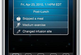 El dispositivo transfiere las mediciones al iPhone/iPod y, gracias a una aplicación específica que pronto estará en la AppStore, el/la usuari@ puede realizar una gran cantidad de tareas en comparación con los glucómetros a los que estamos habituados. De la imagen podemos deducir que habrá una mejor representación del histórico de las mediciones, la posibilidad de ofrecer consejos en base a las mediciones… pero, dándole unas vueltas más, se me ocurre que no sería nada complicado (y sí muy beneficioso) que el dispositivo pudiera alertar a familiares o servicios sanitarios de la glucemia y posición GPS del/la usuari@ en caso de emergencia o que, en línea a una de mis recientes entradas, actualizar las mediciones en nuestro registro personal de salud, como pudiera ser Google Health (aunque con las relaciones que mantienen Google y Apple últimamente, no sé yo…).