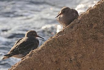 Una vez más, la escollera del Port Olímpic ha vuelto a ofrecer una escena que confirma la fidelidad del correlimos oscuro (Calidris maritima) a este entorno costero urbano. Los dos individuos que ya había observado en temporadas recientes siguen presentes este invierno. Esta mañana los hemos visto juntos, posados en el mismo bloque de hormigón de la escollera, compartiendo espacio con absoluta tranquilidad.