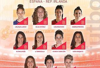 ESPAÑA :XI inicial: Lola Gallardo, Celia Jiménez, Leila Ouahabi, Andrea Pereira, Ruth García (Vicky Losada, min. 46), Virginia Torrecilla, Marta Torrejón, Vero Boquete (Jenny Hermoso, min. 73), Alexia Putellas, Amanda Sampedro, Erika Vázquez (Marta Corredera, min. 46).